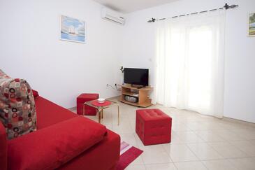 Az Apartman 6 főt tud fogadni. Az ágyak a/az 3 hálószobában vannak, melynek méretei 76m2. A forró nyári estéket a vendégek saját teraszukon élvezhetik. Az apartmanból tengerre néző kilátás nyílik. A közös barbecue-helyet a vendég szabadon használhatja. A vendégek itt tartózkodásuk ideje alatt használhatják a közös medencét.