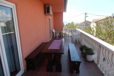 Az Apartman 6 főt tud fogadni. Az ágyak a/az 2 hálószobában vannak, melynek méretei 69m2. A forró nyári estéket a vendégek saját teraszukon élvezhetik. Az apartmanból tengerre néző kilátás nyílik. A közös barbecue-helyet a vendég szabadon használhatja.