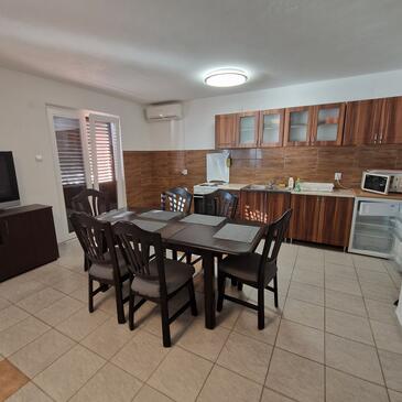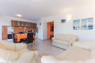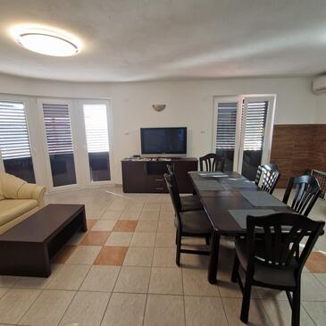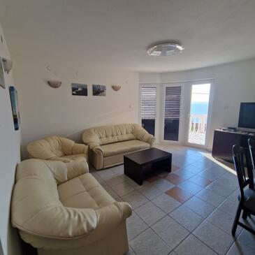 Az Apartman 7 főt tud fogadni. Az ágyak a/az 3 hálószobában, és a nappaliban/ben vannak, melynek méretei 58m2. A forró nyári estéket a vendégek saját teraszukon élvezhetik. Az apartmanból tengerre néző kilátás nyílik. A közös barbecue-helyet a vendég szabadon használhatja.