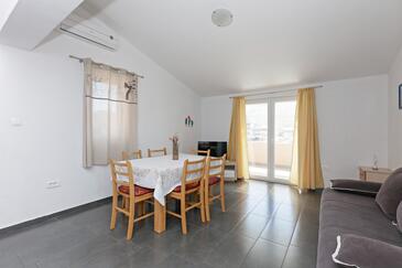 Az Apartman 6 főt tud fogadni. Az ágyak a/az 2 hálószobában, és a nappaliban/ben vannak, melynek méretei 52m2. A forró nyári estéket a vendégek saját balkonukon élvezhetik. Az apartmanból tengerre néző kilátás nyílik. A közös barbecue-helyet a vendég szabadon használhatja. A szállásegységbe lehetséges háziállatot hozni, ennek költségét a foglalási díj tartalmazza.