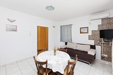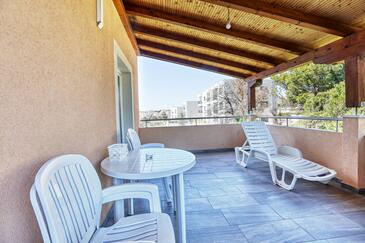 Az Apartman 6 főt tud fogadni. Az ágyak a/az 2 hálószobában, és a nappaliban/ben vannak, melynek méretei 52m2. A forró nyári estéket a vendégek saját balkonukon élvezhetik. Az apartmanból tengerre néző kilátás nyílik. A közös barbecue-helyet a vendég szabadon használhatja. A szállásegységbe lehetséges háziállatot hozni, ennek költségét a foglalási díj tartalmazza.