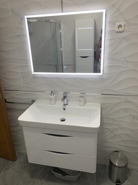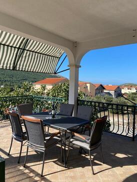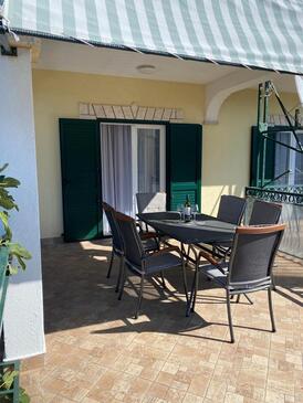Az Apartman 5 főt tud fogadni. Az ágyak a/az 2 hálószobában vannak, melynek méretei 65m2. A forró nyári estéket a vendégek saját teraszukon élvezhetik. Az apartmanból tengerre néző kilátás nyílik. A közös barbecue-helyet a vendég szabadon használhatja.