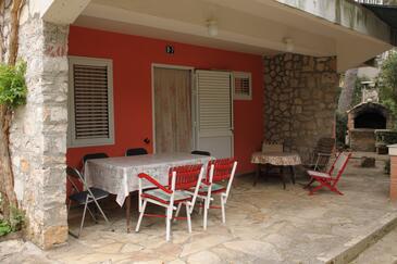 Az Apartman 4 főt tud fogadni. Az ágyak a/az 3 hálószobában vannak, melynek méretei 47m2. A forró nyári estéket a vendégek saját teraszukon élvezhetik. A közös barbecue-helyet a vendég szabadon használhatja. A szállásegységbe lehetséges háziállatot hozni, ennek költségét a foglalási díj tartalmazza.
