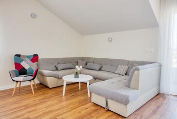 Az Apartman 8 főt tud fogadni. Az ágyak a/az 3 hálószobában, és a nappaliban/ben vannak, melynek méretei 118m2. A forró nyári estéket a vendégek saját teraszukon élvezhetik. Az apartmanból tengerre néző kilátás nyílik. A közös barbecue-helyet a vendég szabadon használhatja. A vendégek itt tartózkodásuk ideje alatt használhatják a közös medencét. A lefoglalt szállásegység vendégeinek az érkezés napján a helyszínen letétet kell fizetniük (az összeg a honlapon fel van tüntetve).