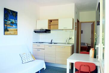 Az Apartman 4 főt tud fogadni. Az ágyak a/az 1 hálószobában, és a nappaliban/ben vannak, melynek méretei 33m2. A forró nyári estéket a vendégek saját teraszukon élvezhetik. A közös barbecue-helyet a vendég szabadon használhatja.