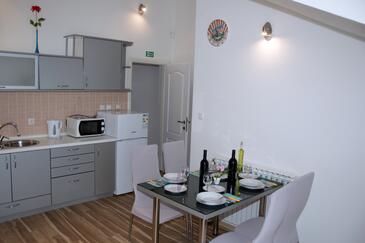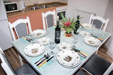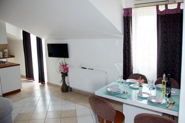 Az Apartman 6 főt tud fogadni. Az ágyak a/az 2 hálószobában, és a étkezőban/ben vannak, melynek méretei 45m2. A forró nyári estéket a vendégek saját teraszukon élvezhetik. A közös barbecue-helyet a vendég szabadon használhatja. A vendégek itt tartózkodásuk ideje alatt használhatják a közös medencét. A szállásegységbe lehetséges háziállatot hozni felár ellenében.