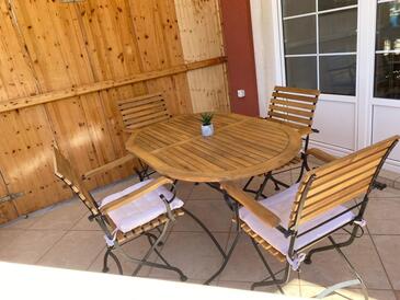 Az Apartman 4 főt tud fogadni. Az ágyak a/az 2 hálószobában vannak, melynek méretei 46m2. A forró nyári estéket a vendégek saját teraszukon élvezhetik. Az apartmanból tengerre néző kilátás nyílik. A közös barbecue-helyet a vendég szabadon használhatja.
