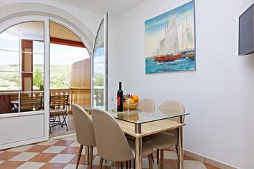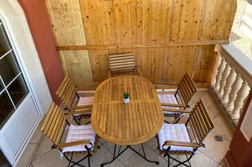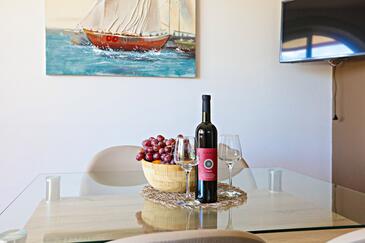 Az Apartman 4 főt tud fogadni. Az ágyak a/az 2 hálószobában vannak, melynek méretei 46m2. A forró nyári estéket a vendégek saját teraszukon élvezhetik. Az apartmanból tengerre néző kilátás nyílik. A közös barbecue-helyet a vendég szabadon használhatja.