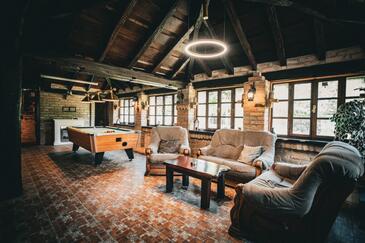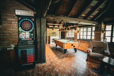 Az Ház 8 főt tud fogadni. Az ágyak a/az 2 hálószobában, és a nappaliban/ben vannak, melynek méretei 202m2. A forró nyári estéket a vendégek saját teraszukon élvezhetik. A teljes élvezet és kikapcsolódás érdekében van saját barbecue hely is, csakis e szálláshely vendégei számára. A szállásegységbe lehetséges háziállatot hozni, ennek költségét a foglalási díj tartalmazza. A lefoglalt szállásegység bizonyos helyiségei nem összekötöttek.