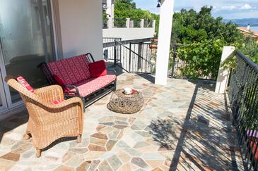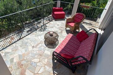Az Apartman 4 főt tud fogadni. Az ágyak a/az 2 hálószobában vannak, melynek méretei 56m2. A forró nyári estéket a vendégek saját teraszukon élvezhetik. Az apartmanból tengerre néző kilátás nyílik. A teljes élvezet és kikapcsolódás érdekében van saját barbecue hely is, csakis e szálláshely vendégei számára.