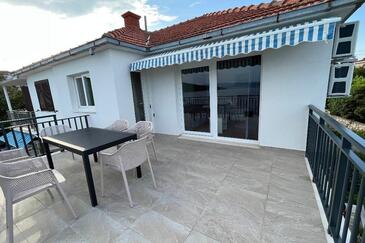 Az Apartman 6 főt tud fogadni. Az ágyak a/az 2 hálószobában, és a nappaliban/ben vannak, melynek méretei 57m2. A forró nyári estéket a vendégek saját teraszukon élvezhetik. Az apartmanból tengerre néző kilátás nyílik. A közös barbecue-helyet a vendég szabadon használhatja. A szállásegységbe lehetséges háziállatot hozni felár ellenében.
