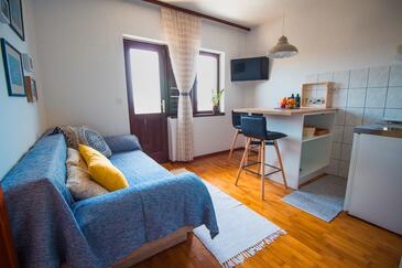 Az Apartman 3 főt tud fogadni. Az ágyak a/az 1 hálószobában, és a nappaliban/ben vannak, melynek méretei 27m2. A forró nyári estéket a vendégek saját balkonukon élvezhetik. Az apartmanból tengerre néző kilátás nyílik. A közös barbecue-helyet a vendég szabadon használhatja.