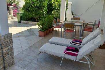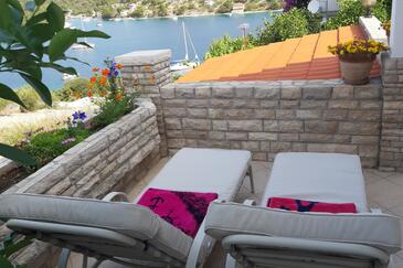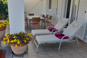Az Apartman 4 főt tud fogadni. Az ágyak a/az 2 hálószobában vannak, melynek méretei 45m2. A forró nyári estéket a vendégek saját teraszukon élvezhetik. Az apartmanból tengerre néző kilátás nyílik. A közös barbecue-helyet a vendég szabadon használhatja.