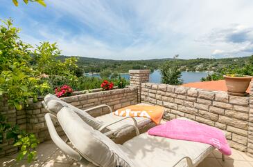 Az Apartman 4 főt tud fogadni. Az ágyak a/az 2 hálószobában vannak, melynek méretei 45m2. A forró nyári estéket a vendégek saját teraszukon élvezhetik. Az apartmanból tengerre néző kilátás nyílik. A közös barbecue-helyet a vendég szabadon használhatja.