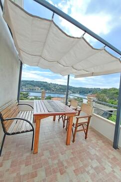 Az Apartman 4 főt tud fogadni. Az ágyak a/az 2 hálószobában vannak, melynek méretei 35m2. A forró nyári estéket a vendégek saját teraszukon élvezhetik. Az apartmanból tengerre néző kilátás nyílik. A közös barbecue-helyet a vendég szabadon használhatja.