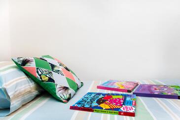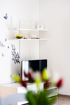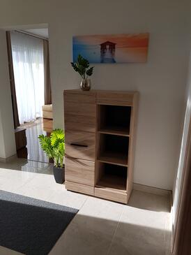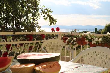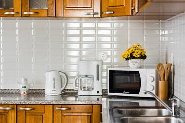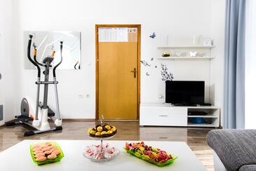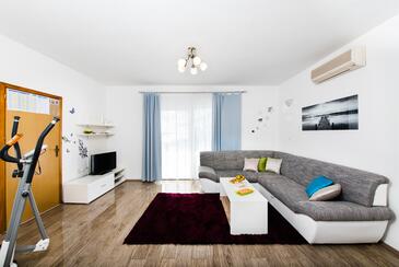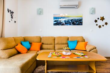 Az Apartman 8 főt tud fogadni. Az ágyak a/az 3 hálószobában, és a nappaliban/ben vannak, melynek méretei 79m2. A forró nyári estéket a vendégek saját teraszukon élvezhetik. Az apartmanból tengerre néző kilátás nyílik. A közös barbecue-helyet a vendég szabadon használhatja. A vendégek itt tartózkodásuk ideje alatt használhatják a közös medencét. A szállásegységbe lehetséges háziállatot hozni, ennek költségét a foglalási díj tartalmazza.