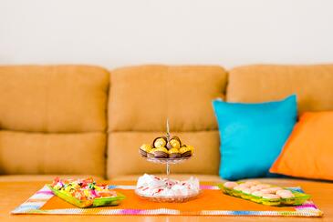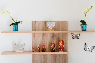 Az Apartman 8 főt tud fogadni. Az ágyak a/az 3 hálószobában, és a nappaliban/ben vannak, melynek méretei 79m2. A forró nyári estéket a vendégek saját teraszukon élvezhetik. Az apartmanból tengerre néző kilátás nyílik. A közös barbecue-helyet a vendég szabadon használhatja. A vendégek itt tartózkodásuk ideje alatt használhatják a közös medencét. A szállásegységbe lehetséges háziállatot hozni, ennek költségét a foglalási díj tartalmazza.
