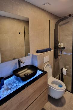 Az Apartman 4 főt tud fogadni. Az ágyak a/az 1 hálószobában, és a nappaliban/ben vannak, melynek méretei 54m2. A forró nyári estéket a vendégek saját teraszukon élvezhetik. Az apartmanból tengerre néző kilátás nyílik. A közös barbecue-helyet a vendég szabadon használhatja.