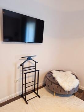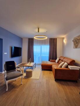 Az Apartman 6 főt tud fogadni. Az ágyak a/az 2 hálószobában, és a nappaliban/ben vannak, melynek méretei 95m2. A forró nyári estéket a vendégek saját teraszukon élvezhetik. Az apartmanból tengerre néző kilátás nyílik. A közös barbecue-helyet a vendég szabadon használhatja. A vendégek itt tartózkodásuk ideje alatt használhatják a közös medencét.