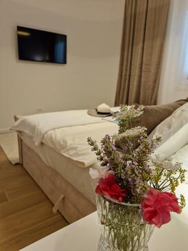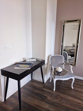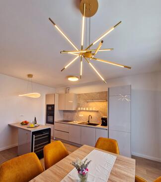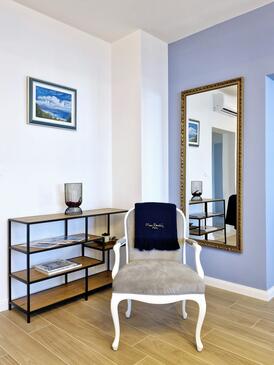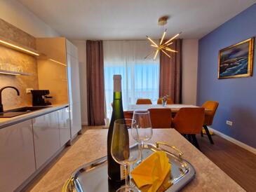 Az Apartman 6 főt tud fogadni. Az ágyak a/az 2 hálószobában, és a nappaliban/ben vannak, melynek méretei 95m2. A forró nyári estéket a vendégek saját teraszukon élvezhetik. Az apartmanból tengerre néző kilátás nyílik. A közös barbecue-helyet a vendég szabadon használhatja. A vendégek itt tartózkodásuk ideje alatt használhatják a közös medencét.