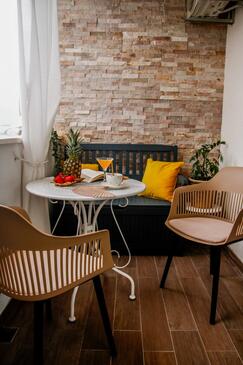 Az Apartman 4 főt tud fogadni. Az ágyak a/az 2 hálószobában vannak, melynek méretei 47m2. A forró nyári estéket a vendégek saját balkonukon élvezhetik. Az apartmanból tengerre néző kilátás nyílik.