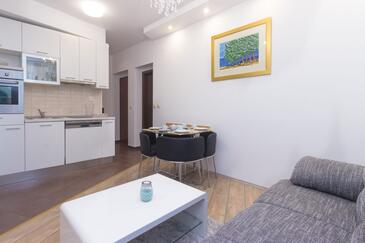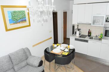 Az Apartman 3 főt tud fogadni. Az ágyak a/az 1 hálószobában, és a nappaliban/ben vannak, melynek méretei 30m2. A forró nyári estéket a vendégek saját teraszukon élvezhetik. Az apartmanból tengerre néző kilátás nyílik. A közös barbecue-helyet a vendég szabadon használhatja.
