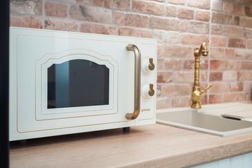 Az Apartman 4 főt tud fogadni. Az ágyak a/az 1 hálószobában, és a nappaliban/ben vannak, melynek méretei 46m2. A forró nyári estéket a vendégek saját teraszukon élvezhetik. A teljes élvezet és kikapcsolódás érdekében van saját barbecue hely is, csakis e szálláshely vendégei számára.