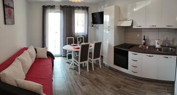 Az Apartman 4 főt tud fogadni. Az ágyak a/az 1 hálószobában, és a nappaliban/ben vannak, melynek méretei 50m2. A forró nyári estéket a vendégek saját teraszukon élvezhetik. Az apartmanból tengerre néző kilátás nyílik. A közös barbecue-helyet a vendég szabadon használhatja.