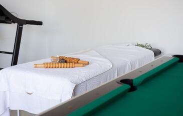 Az Apartman 8 főt tud fogadni. Az ágyak a/az 3 hálószobában vannak, melynek méretei 116m2. A forró nyári estéket a vendégek saját teraszukon élvezhetik. Az apartmanból tengerre néző kilátás nyílik. A teljes élvezet és kikapcsolódás érdekében van saját barbecue hely is, csakis e szálláshely vendégei számára. A vendégek itt tartózkodásuk ideje alatt használhatják a közös medencét.