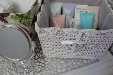 Az Apartman 6 főt tud fogadni. Az ágyak a/az 3 hálószobában vannak, melynek méretei 96m2. A forró nyári estéket a vendégek saját teraszukon élvezhetik. Az apartmanból tengerre néző kilátás nyílik. A teljes élvezet és kikapcsolódás érdekében van saját barbecue hely is, csakis e szálláshely vendégei számára.