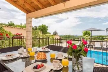 Az Ház 4 főt tud fogadni. Az ágyak a/az 2 hálószobában vannak, melynek méretei 100m2. A forró nyári estéket a vendégek saját teraszukon élvezhetik. A házból tengerre néző kilátás nyílik. A teljes élvezet és kikapcsolódás érdekében van saját barbecue hely is, csakis e szálláshely vendégei számára. A vendégek itt tartózkodásuk ideje alatt használhatják a közös medencét.