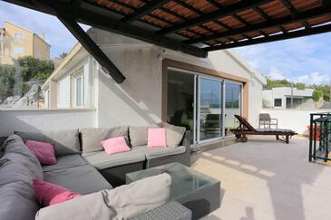 Az Apartman 6 főt tud fogadni. Az ágyak a/az 2 hálószobában, és a nappaliban/ben vannak, melynek méretei 67m2. A forró nyári estéket a vendégek saját teraszukon élvezhetik. Az apartmanból tengerre néző kilátás nyílik. A teljes élvezet és kikapcsolódás érdekében van saját barbecue hely is, csakis e szálláshely vendégei számára.