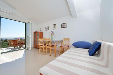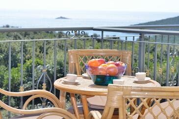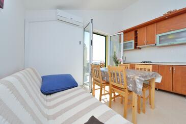 Az Apartman 4 főt tud fogadni. Az ágyak a/az 1 hálószobában, és a nappaliban/ben vannak, melynek méretei 39m2. A forró nyári estéket a vendégek saját teraszukon élvezhetik. Az apartmanból tengerre néző kilátás nyílik. A közös barbecue-helyet a vendég szabadon használhatja. A szállásegységbe lehetséges háziállatot hozni, ennek költségét a foglalási díj tartalmazza.