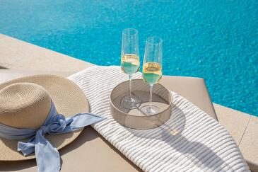 Az Ház 7 főt tud fogadni. Az ágyak a/az 3 hálószobában, és a nappaliban/ben vannak, melynek méretei 106m2. A forró nyári estéket a vendégek saját teraszukon élvezhetik. A házból tengerre néző kilátás nyílik. A teljes élvezet és kikapcsolódás érdekében van saját barbecue hely is, csakis e szálláshely vendégei számára. A vendégek itt tartózkodásuk ideje alatt kikapcsolódás céljából használhatják a magán medencét. A szállásegységbe lehetséges háziállatot hozni, ennek költségét a foglalási díj tartalmazza. A lefoglalt szállásegység vendégeinek az érkezés napján a helyszínen letétet kell fizetniük (az összeg a honlapon fel van tüntetve).