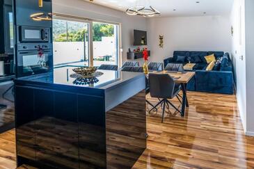 Az Ház 8 főt tud fogadni. Az ágyak a/az 3 hálószobában, és a nappaliban/ben vannak, melynek méretei 87m2. A forró nyári estéket a vendégek saját teraszukon élvezhetik. A közös barbecue-helyet a vendég szabadon használhatja. A vendégek itt tartózkodásuk ideje alatt kikapcsolódás céljából használhatják a magán medencét.