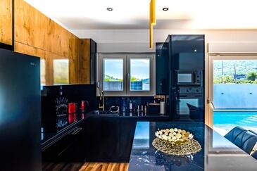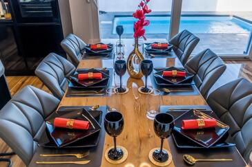 Az Ház 8 főt tud fogadni. Az ágyak a/az 3 hálószobában, és a nappaliban/ben vannak, melynek méretei 87m2. A forró nyári estéket a vendégek saját teraszukon élvezhetik. A közös barbecue-helyet a vendég szabadon használhatja. A vendégek itt tartózkodásuk ideje alatt kikapcsolódás céljából használhatják a magán medencét.
