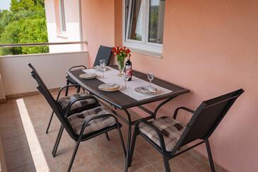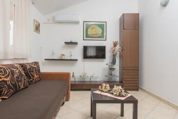 Az Apartman 6 főt tud fogadni. Az ágyak a/az 2 hálószobában, és a nappaliban/ben vannak, melynek méretei 60m2. A forró nyári estéket a vendégek saját teraszukon élvezhetik. Az apartmanból tengerre néző kilátás nyílik. A közös barbecue-helyet a vendég szabadon használhatja.