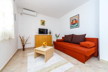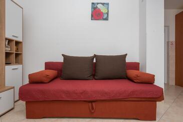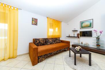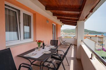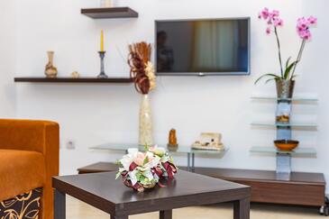 Az Apartman 6 főt tud fogadni. Az ágyak a/az 2 hálószobában, és a nappaliban/ben vannak, melynek méretei 60m2. A forró nyári estéket a vendégek saját teraszukon élvezhetik. Az apartmanból tengerre néző kilátás nyílik. A közös barbecue-helyet a vendég szabadon használhatja.