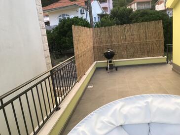 Az Apartman 4 főt tud fogadni. Az ágyak a/az 1 hálószobában, és a nappaliban/ben vannak, melynek méretei 44m2. A forró nyári estéket a vendégek saját teraszukon élvezhetik. Az apartmanból tengerre néző kilátás nyílik. A közös barbecue-helyet a vendég szabadon használhatja. A szállásegységbe lehetséges háziállatot hozni felár ellenében.