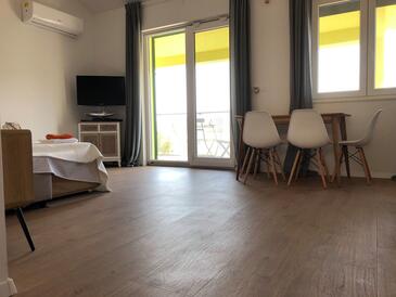 Az Apartman 4 főt tud fogadni. Az ágyak a/az 1 hálószobában, és a nappaliban/ben vannak, melynek méretei 44m2. A forró nyári estéket a vendégek saját teraszukon élvezhetik. Az apartmanból tengerre néző kilátás nyílik. A közös barbecue-helyet a vendég szabadon használhatja. A szállásegységbe lehetséges háziállatot hozni felár ellenében.