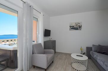 Az Apartman 6 főt tud fogadni. Az ágyak a/az 2 hálószobában, és a nappaliban/ben vannak, melynek méretei 98m2. A forró nyári estéket a vendégek saját teraszukon élvezhetik. Az apartmanból tengerre néző kilátás nyílik. A szállásegységbe lehetséges háziállatot hozni felár ellenében.