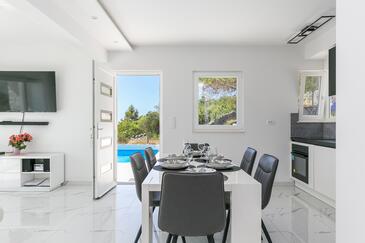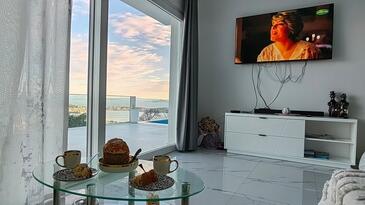 Az Ház 6 főt tud fogadni. Az ágyak a/az 2 hálószobában, és a nappaliban/ben vannak, melynek méretei 114m2. A forró nyári estéket a vendégek saját teraszukon élvezhetik. A házból tengerre néző kilátás nyílik. A teljes élvezet és kikapcsolódás érdekében van saját barbecue hely is, csakis e szálláshely vendégei számára. A vendégek itt tartózkodásuk ideje alatt kikapcsolódás céljából használhatják a magán medencét.