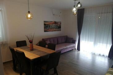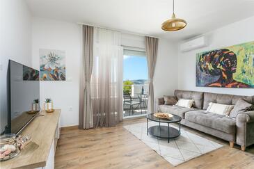 Az Apartman 4 főt tud fogadni. Az ágyak a/az 1 hálószobában, és a nappaliban/ben vannak, melynek méretei 36m2. A forró nyári estéket a vendégek saját balkonukon élvezhetik. Az apartmanból tengerre néző kilátás nyílik. A közös barbecue-helyet a vendég szabadon használhatja. A lefoglalt szállásegység közös teraszt használ..