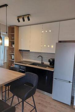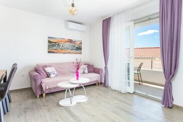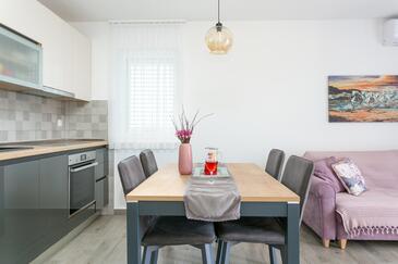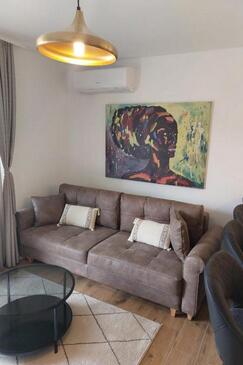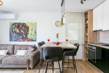 Az Apartman 4 főt tud fogadni. Az ágyak a/az 1 hálószobában, és a nappaliban/ben vannak, melynek méretei 36m2. A forró nyári estéket a vendégek saját balkonukon élvezhetik. Az apartmanból tengerre néző kilátás nyílik. A közös barbecue-helyet a vendég szabadon használhatja. A lefoglalt szállásegység közös teraszt használ..