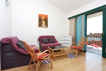 Az Apartman 3 főt tud fogadni. Az ágyak a/az 1 hálószobában, és a nappaliban/ben vannak, melynek méretei 39m2. A forró nyári estéket a vendégek saját teraszukon élvezhetik. Az apartmanból tengerre néző kilátás nyílik. A közös barbecue-helyet a vendég szabadon használhatja.