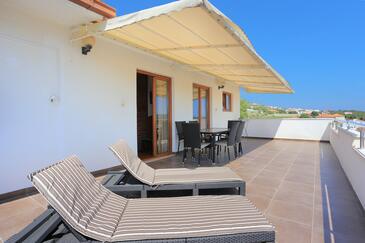 Az Apartman 4 főt tud fogadni. Az ágyak a/az 2 hálószobában vannak, melynek méretei 62m2. A forró nyári estéket a vendégek saját teraszukon élvezhetik. Az apartmanból tengerre néző kilátás nyílik. A közös barbecue-helyet a vendég szabadon használhatja. A szállásegységbe lehetséges háziállatot hozni felár ellenében.