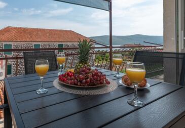 Az Apartman 4 főt tud fogadni. Az ágyak a/az 1 hálószobában, és a nappaliban/ben vannak, melynek méretei 36m2. A forró nyári estéket a vendégek saját teraszukon élvezhetik. Az apartmanból tengerre néző kilátás nyílik. A közös barbecue-helyet a vendég szabadon használhatja. A szállásegységbe lehetséges háziállatot hozni, ennek költségét a foglalási díj tartalmazza.