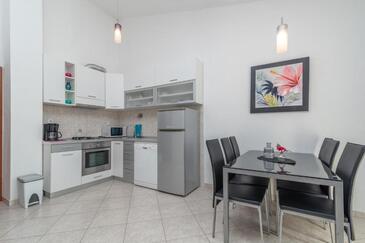 Az Apartman 5 főt tud fogadni. Az ágyak a/az 2 hálószobában, és a nappaliban/ben vannak, melynek méretei 55m2. A forró nyári estéket a vendégek saját teraszukon élvezhetik. Az apartmanból tengerre néző kilátás nyílik. A közös barbecue-helyet a vendég szabadon használhatja. A vendégek itt tartózkodásuk ideje alatt használhatják a közös medencét.
