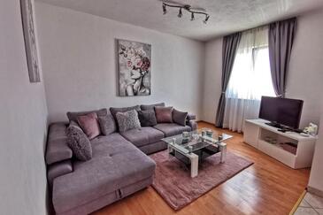 Az Apartman 5 főt tud fogadni. Az ágyak a/az 2 hálószobában, és a nappaliban/ben vannak, melynek méretei 55m2. A forró nyári estéket a vendégek saját teraszukon élvezhetik. Az apartmanból tengerre néző kilátás nyílik. A közös barbecue-helyet a vendég szabadon használhatja. A vendégek itt tartózkodásuk ideje alatt használhatják a közös medencét.