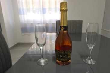 Az Apartman 6 főt tud fogadni. Az ágyak a/az 2 hálószobában, és a nappaliban/ben vannak, melynek méretei 128m2. A forró nyári estéket a vendégek saját teraszukon élvezhetik. Az apartmanból tengerre néző kilátás nyílik. A teljes élvezet és kikapcsolódás érdekében van saját barbecue hely is, csakis e szálláshely vendégei számára. A szállásegységbe lehetséges háziállatot hozni, ennek költségét a foglalási díj tartalmazza.
